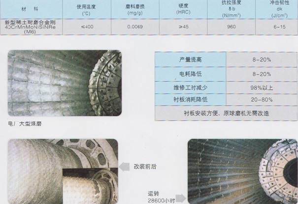 无螺栓自固型耐磨钢衬板 组合自固型(无螺栓)球磨机衬板是以“陈氏衬板发明人,中国耐磨材料学术委员会委员、铸造衬板、铸造磨球国家标准起草人徐州东方抗磨工程研究所所长、高级工程师”陈长顺先生的“球磨机系统工程论”为指导发明的,为近百年来球磨机衬板的划时代产品。其稳定性、可靠性大大超过传统衬板,使金属材料得到最有效的应用,大幅度降低劳动强度,改善劳动环境。性能材料表: